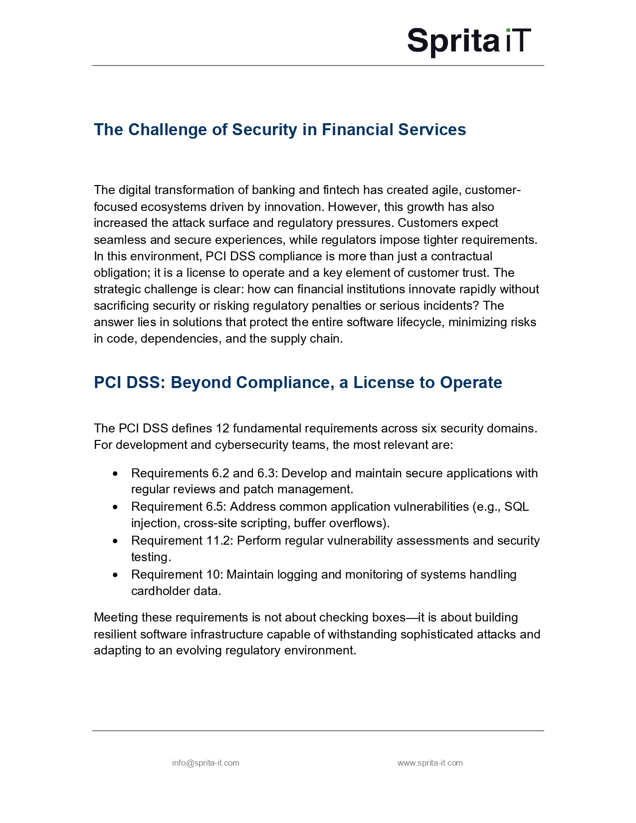 PCI DSS compliance is not just about passing audits—it is about protecting trust in every transaction. By integrating security into the software lifecycle, financial institutions can reduce risk, accelerate innovation, and strengthen resilience in an increasingly regulated market.